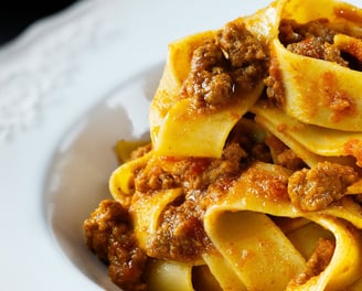 Benvenuti nell'arte culinaria toscana. Le Pappardelle al Ragù di Cinghiale sono un incontro tra la pasta fresca all'uovo e un ragù succulento di cinghiale, che cattura i sapori della campagna italiana. Questa ricetta vi condurrà in un viaggio attraverso le colline toscane.