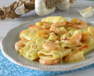 Questi Paccheri con Gamberi e Zafferano sono un connubio di lusso e sapore, una creazione culinaria che celebra la pasta fresca e i frutti del mare in un'unione straordinaria. Grazie per aver scelto di deliziarvi con questa prelibatezza